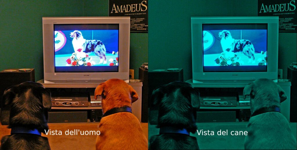 Avendo una visione dicromatica è chiaro che i cani vedono colori diversi (in generale più tenui dei nostri). Inoltre, visto che hanno una percezione del movimento superiore alla nostra, con frequenze di refresh della tv o dei programmi inferiori a 75 Hz, percepiranno uno sfarfallio ed immagini tremolanti.